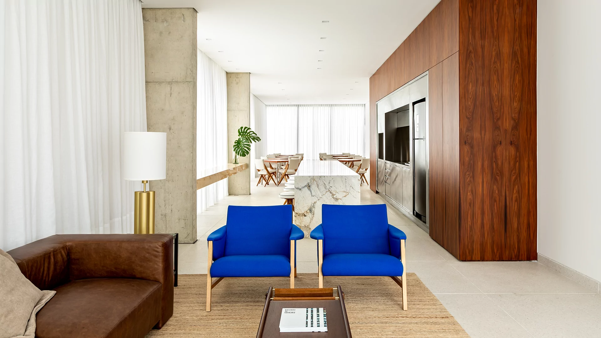 Temos muito carinho por esse projeto que se tornou referência na cidade. entregue em 2020 e também conta com uma belíssima curadoria de mobiliário brasileiro, peças de José Zanine Caldas, Sergio Rodrigues, Marcelo Caruso, Flávio de Carvalho e Lina Bo Bardi acompanham o dia a dia dos moradores. A relação muito transparente e interessante com a rua, os materiais naturais e aconchegantes, a cuidadosa seleção de design e arte e as linhas fortes mas discretas, são alguns dos atributos que fizeram dele um projeto tão premiado e querido.